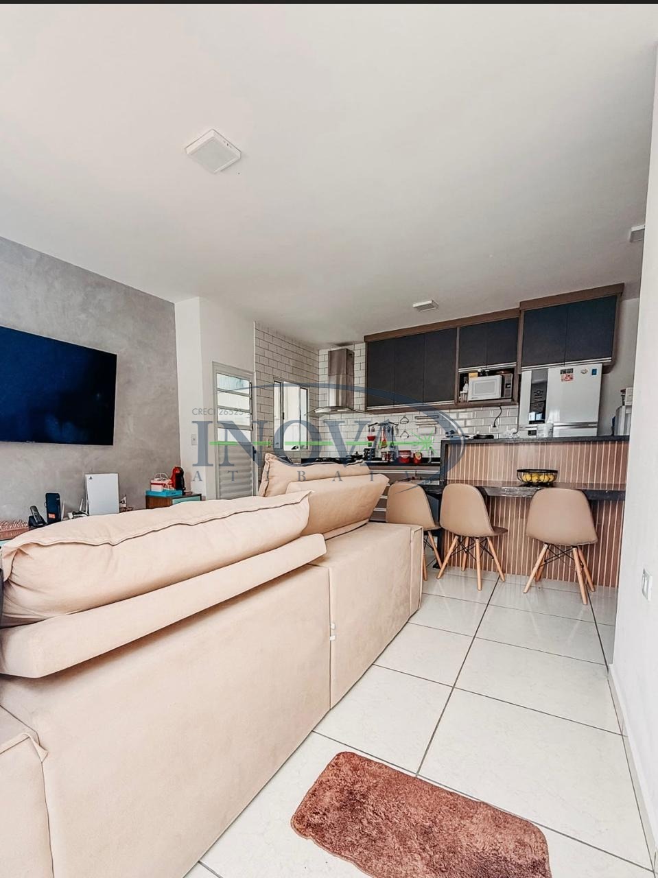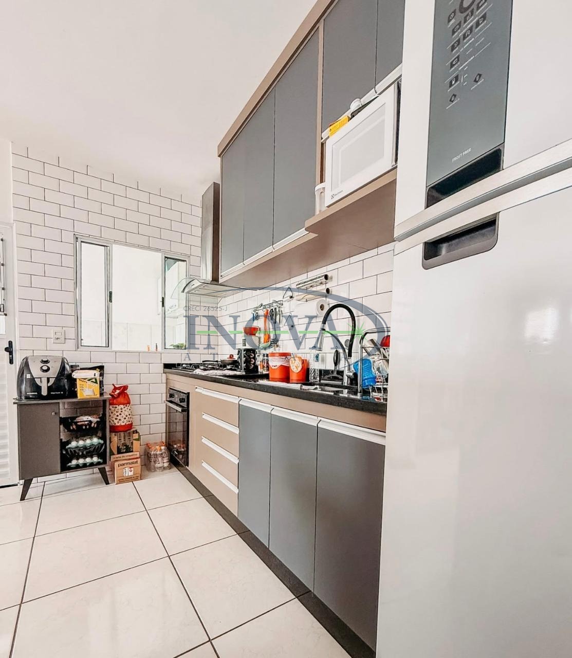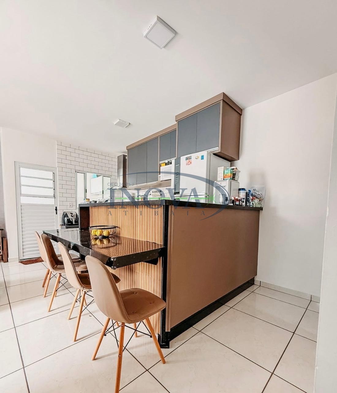 Cozinha no estilo americana, equipada com móveis planejados, oferecendo melhor aproveitamento do espaço e integração com os demais ambientes.