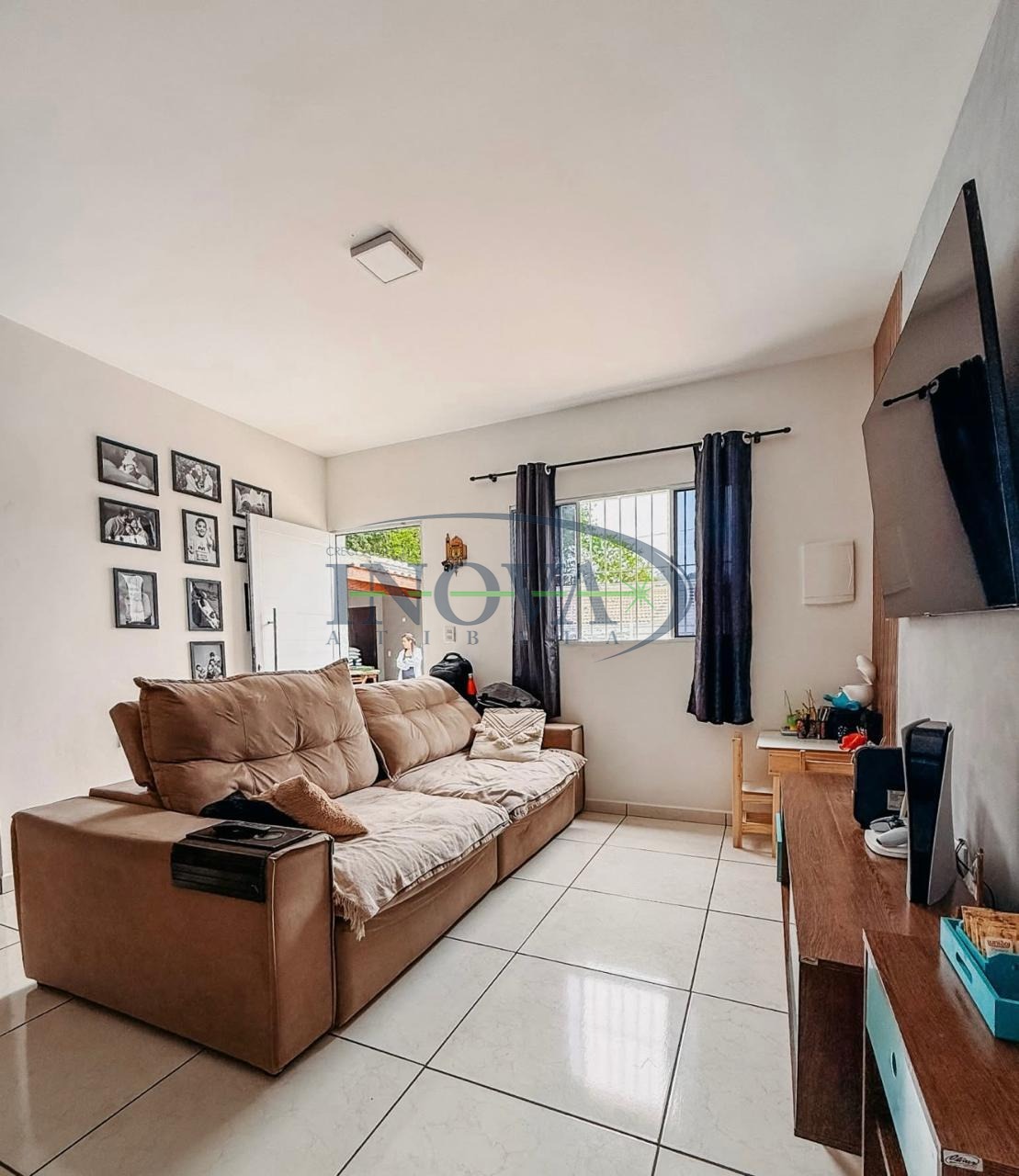 Sala de estar com ambiente aconchegante, perfeita para momentos de descanso e convivência.